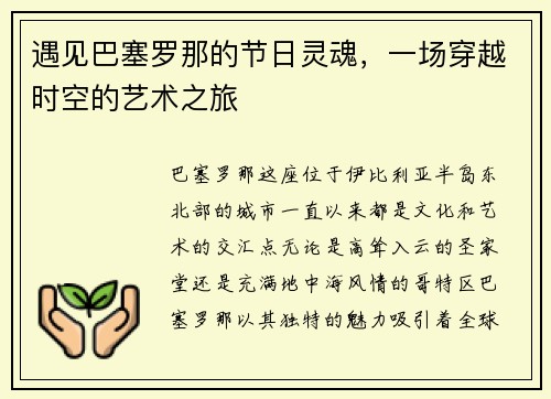 遇见巴塞罗那的节日灵魂,一场穿越时空的艺术之旅