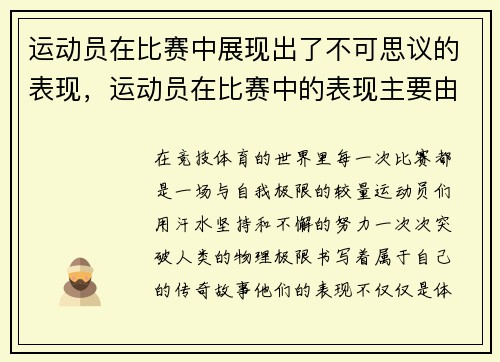 运动员在比赛中展现出了不可思议的表现,运动员在比赛中的表现主要由什么决定
