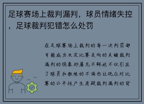 足球赛场上裁判漏判,球员情绪失控,足球裁判犯错怎么处罚