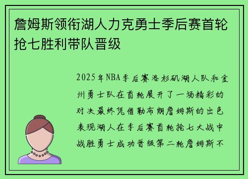 詹姆斯领衔湖人力克勇士季后赛首轮抢七胜利带队晋级