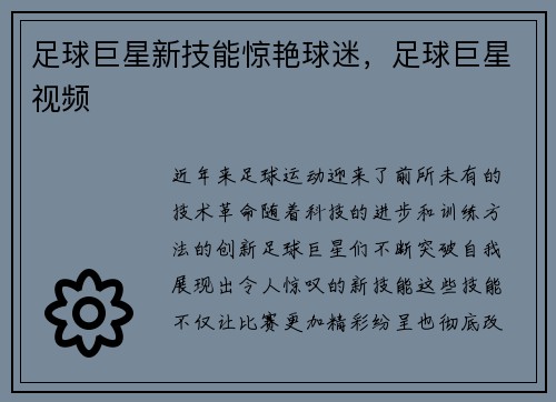 在足球世界中,欧冠联赛一直是全球最为瞩目的赛事之一,每年吸引着数百万球迷的目光。而“足球世界震撼之夜”便是这种盛宴中的巅峰时刻,尤其是欧洲豪门之间的激烈对抗,时常成为全球球迷热议的话题。这一晚,顶级球员们用他们的汗水与才华书写着属于自己的传...