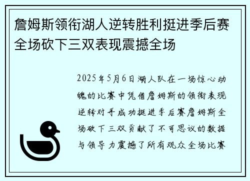 詹姆斯领衔湖人逆转胜利挺进季后赛全场砍下三双表现震撼全场