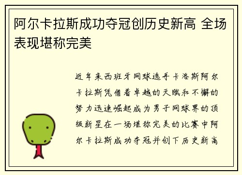 阿尔卡拉斯成功夺冠创历史新高 全场表现堪称完美