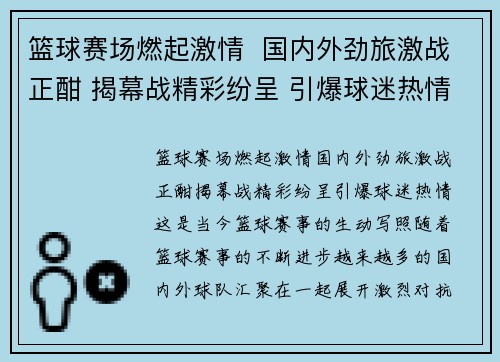 篮球赛场燃起激情 国内外劲旅激战正酣 揭幕战精彩纷呈 引爆球迷热情