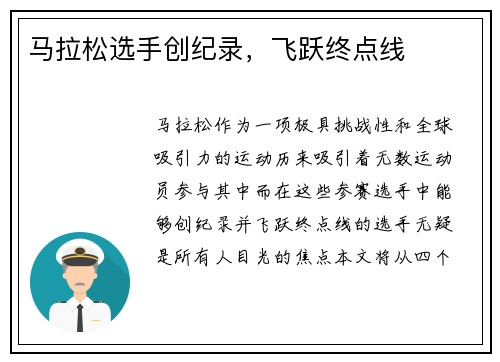 马拉松选手创纪录,飞跃终点线