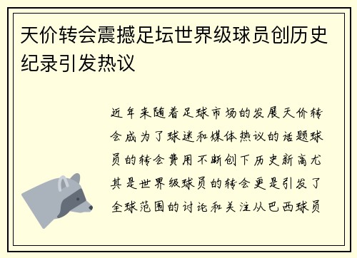 天价转会震撼足坛世界级球员创历史纪录引发热议
