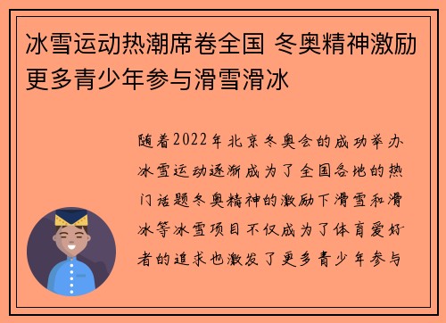 冰雪运动热潮席卷全国 冬奥精神激励更多青少年参与滑雪滑冰