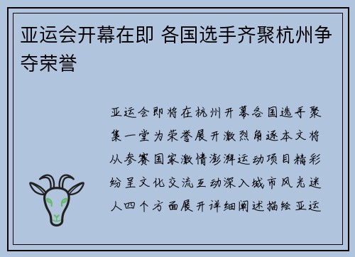 亚运会开幕在即 各国选手齐聚杭州争夺荣誉