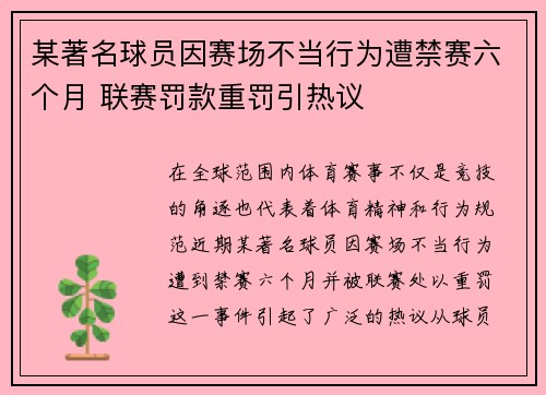 某著名球员因赛场不当行为遭禁赛六个月 联赛罚款重罚引热议
