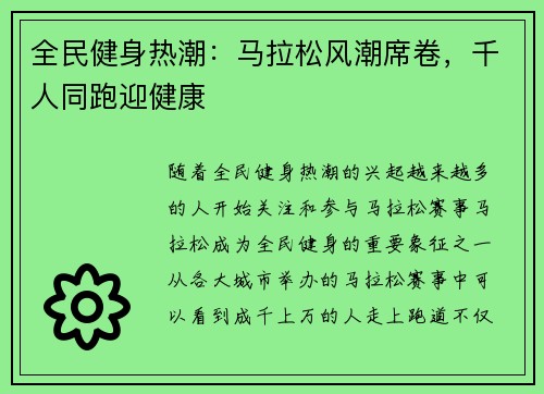 全民健身热潮:马拉松风潮席卷,千人同跑迎健康