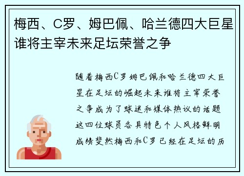 梅西、C罗、姆巴佩、哈兰德四大巨星谁将主宰未来足坛荣誉之争