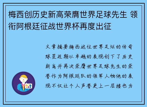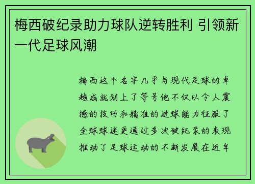 梅西破纪录助力球队逆转胜利 引领新一代足球风潮