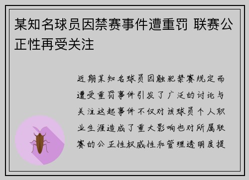 某知名球员因禁赛事件遭重罚 联赛公正性再受关注