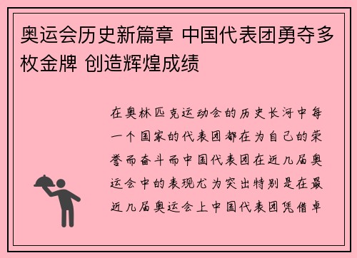 奥运会历史新篇章 中国代表团勇夺多枚金牌 创造辉煌成绩