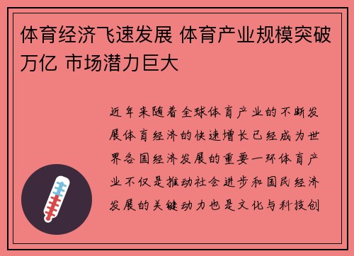体育经济飞速发展 体育产业规模突破万亿 市场潜力巨大