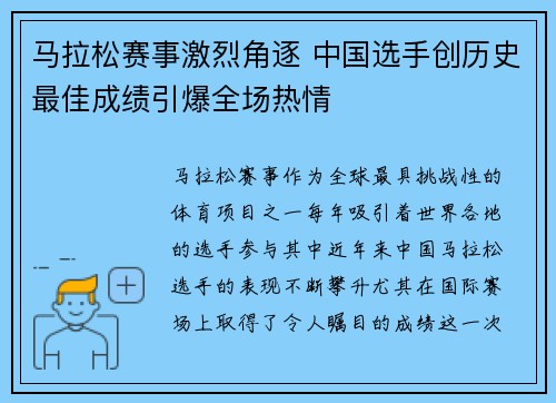 马拉松赛事激烈角逐 中国选手创历史最佳成绩引爆全场热情