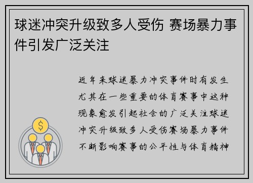 球迷冲突升级致多人受伤 赛场暴力事件引发广泛关注