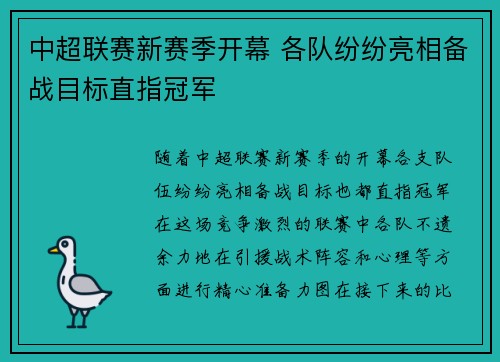 中超联赛新赛季开幕 各队纷纷亮相备战目标直指冠军