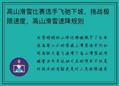 高山滑雪比赛选手飞驰下坡,挑战极限速度,高山滑雪速降规则