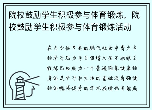 院校鼓励学生积极参与体育锻炼,院校鼓励学生积极参与体育锻炼活动
