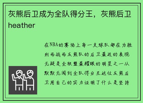 灰熊后卫成为全队得分王,灰熊后卫heather