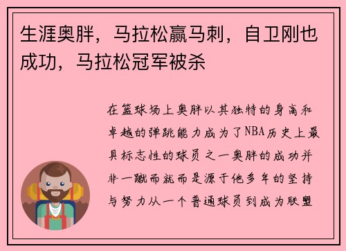 生涯奥胖,马拉松赢马刺,自卫刚也成功,马拉松冠军被杀