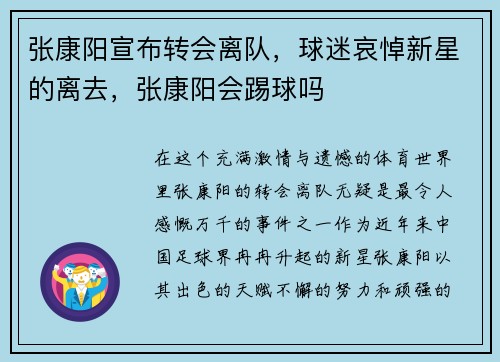 张康阳宣布转会离队,球迷哀悼新星的离去,张康阳会踢球吗