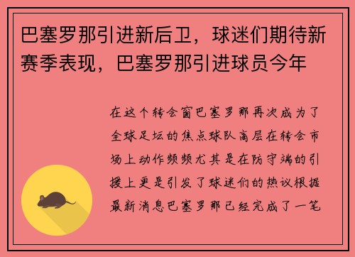 巴塞罗那引进新后卫,球迷们期待新赛季表现,巴塞罗那引进球员今年