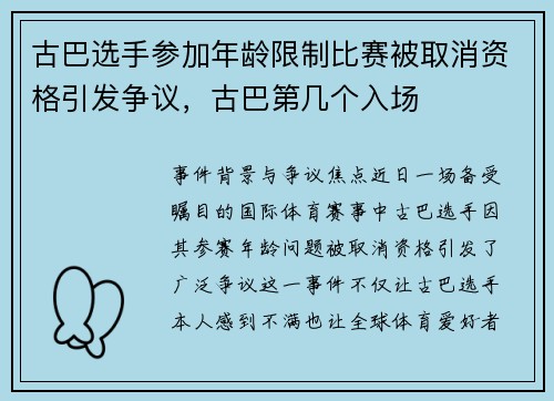 古巴选手参加年龄限制比赛被取消资格引发争议,古巴第几个入场