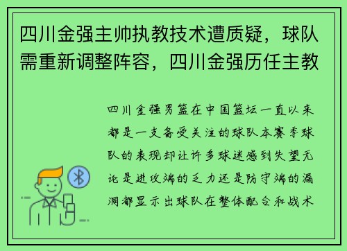四川金强主帅执教技术遭质疑,球队需重新调整阵容,四川金强历任主教练
