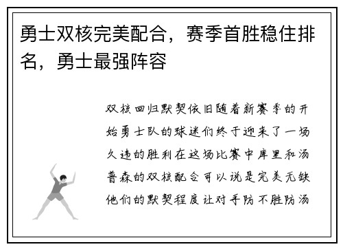 勇士双核完美配合,赛季首胜稳住排名,勇士最强阵容