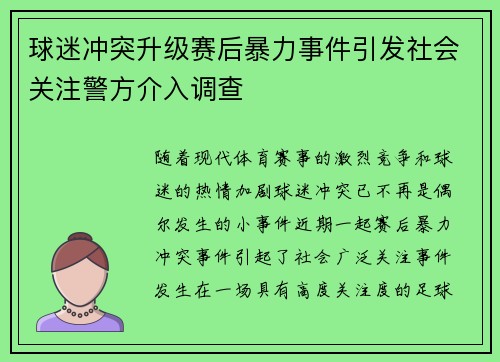 球迷冲突升级赛后暴力事件引发社会关注警方介入调查