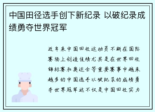 中国田径选手创下新纪录 以破纪录成绩勇夺世界冠军