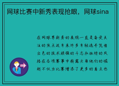 在网球界,新秀的表现一直是备受关注的焦点。近年来,许多年轻选手凭借出色的技术、顽强的斗志和独特的风格,在各项赛事中崭露头角。他们的崛起不仅为比赛增添了更多的看点,也为这项运动注入了新的活力。 从大满贯赛场到ATP和WTA的巡回赛,新秀们的身...