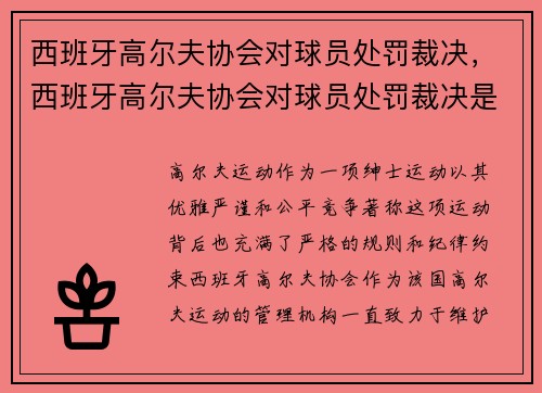 西班牙高尔夫协会对球员处罚裁决,西班牙高尔夫协会对球员处罚裁决是什么