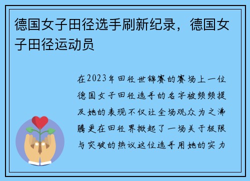 德国女子田径选手刷新纪录,德国女子田径运动员