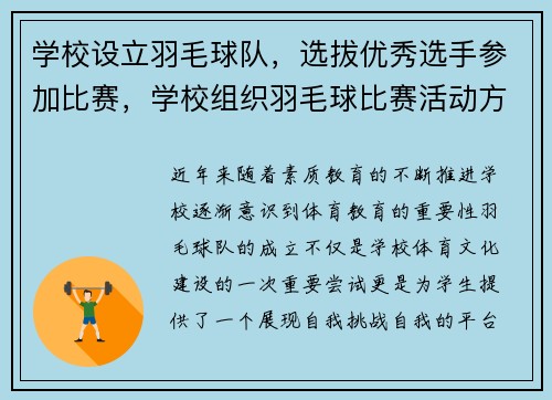学校设立羽毛球队,选拔优秀选手参加比赛,学校组织羽毛球比赛活动方案