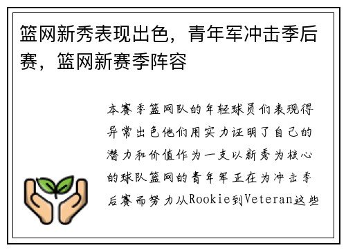 篮网新秀表现出色,青年军冲击季后赛,篮网新赛季阵容