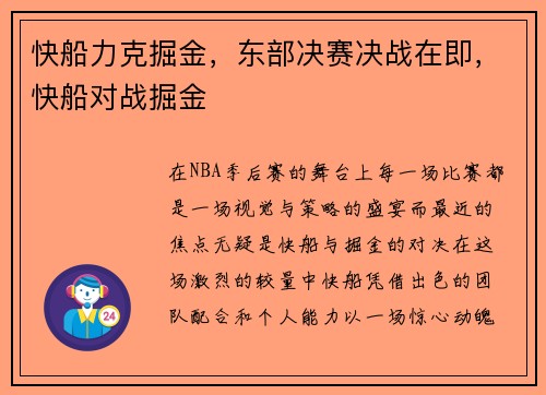 在NBA季后赛的舞台上,每一场比赛都是一场视觉与策略的盛宴,而最近的焦点无疑是快船与掘金的对决。在这场激烈的较量中,快船凭借出色的团队配合和个人能力,以一场惊心动魄的胜利力克掘金,成功晋级东部决赛。这场比赛不仅展现了NBA的激烈竞争,也为f...