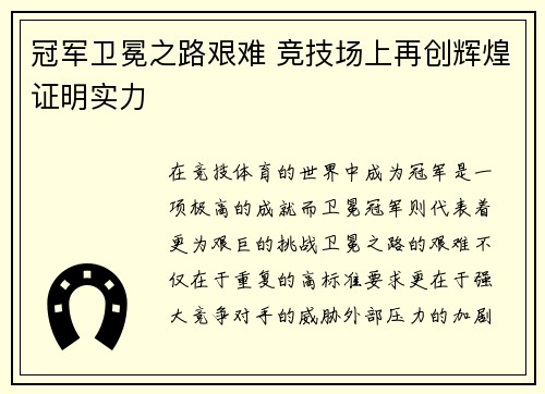 冠军卫冕之路艰难 竞技场上再创辉煌证明实力