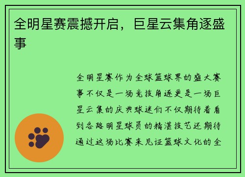 全明星赛作为全球篮球界的盛大赛事,不仅是一场竞技角逐,更是一场巨星云集的庆典。球迷们不仅期待着看到各路明星球员的精湛技艺,还期待通过这场比赛来见证篮球文化的全新高度。本文将从四个方面详细阐述全明星赛震撼开启,巨星云集角逐盛事的精彩之处。首先...