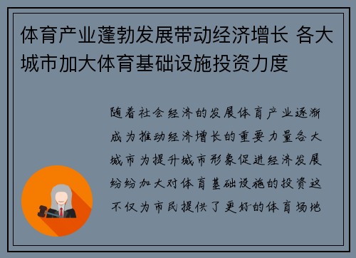 随着社会经济的发展,体育产业逐渐成为推动经济增长的重要力量。各大城市为提升城市形象、促进经济发展,纷纷加大对体育基础设施的投资。这不仅为市民提供了更好的体育场地,也为经济注入了新的活力。本文将从四个方面详细探讨体育产业如何带动经济增长,以及...