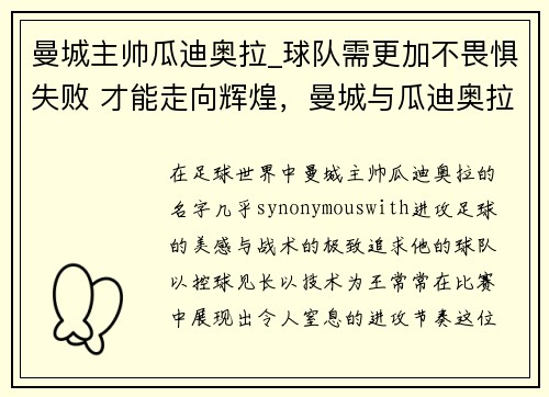 曼城主帅瓜迪奥拉_球队需更加不畏惧失败 才能走向辉煌,曼城与瓜迪奥拉步入寒冬