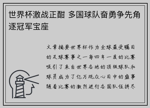 世界杯激战正酣 多国球队奋勇争先角逐冠军宝座